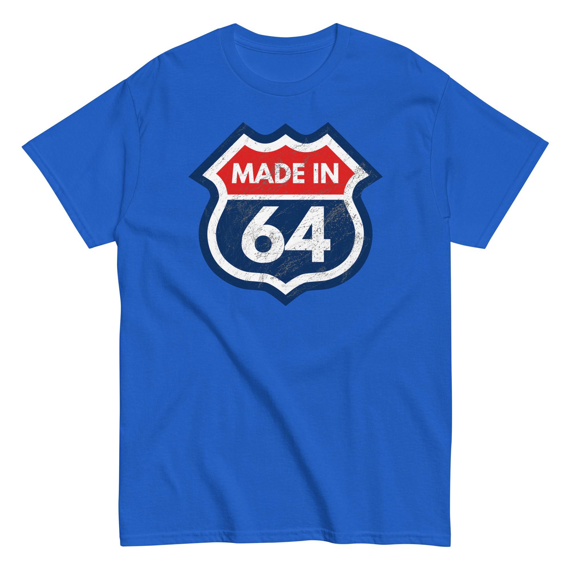 Embrace the spirit of adventure and the open road with our ‘MADE IN 64’ t-shirt, a nod to the classic American highway and a fantastic way to celebrate turning 60. The design mimics the iconic Route 66 road sign, with “MADE IN 64” boldly declaring the year of birth in a fun and stylish way.