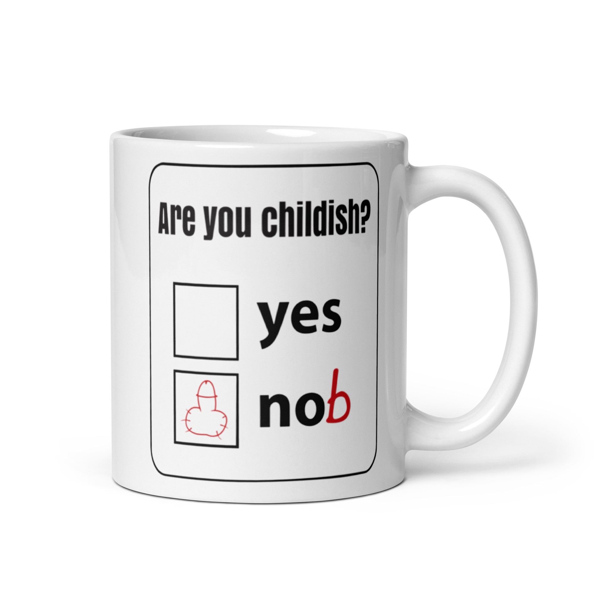 Bring a smile and a bit of cheeky fun to your mate’s day with our “Are You Childish?” Novelty Mug. This mug poses a humorous question, “Are You Childish?” with the options ‘Yes’ or ‘No’. However, the real twist is the clever setup allowing for a playful addition. By adding a ‘b’ after ‘No’ and replacing the tick with a doodle of a dick, this mug is perfect for those with a rude and childish sense of humour.