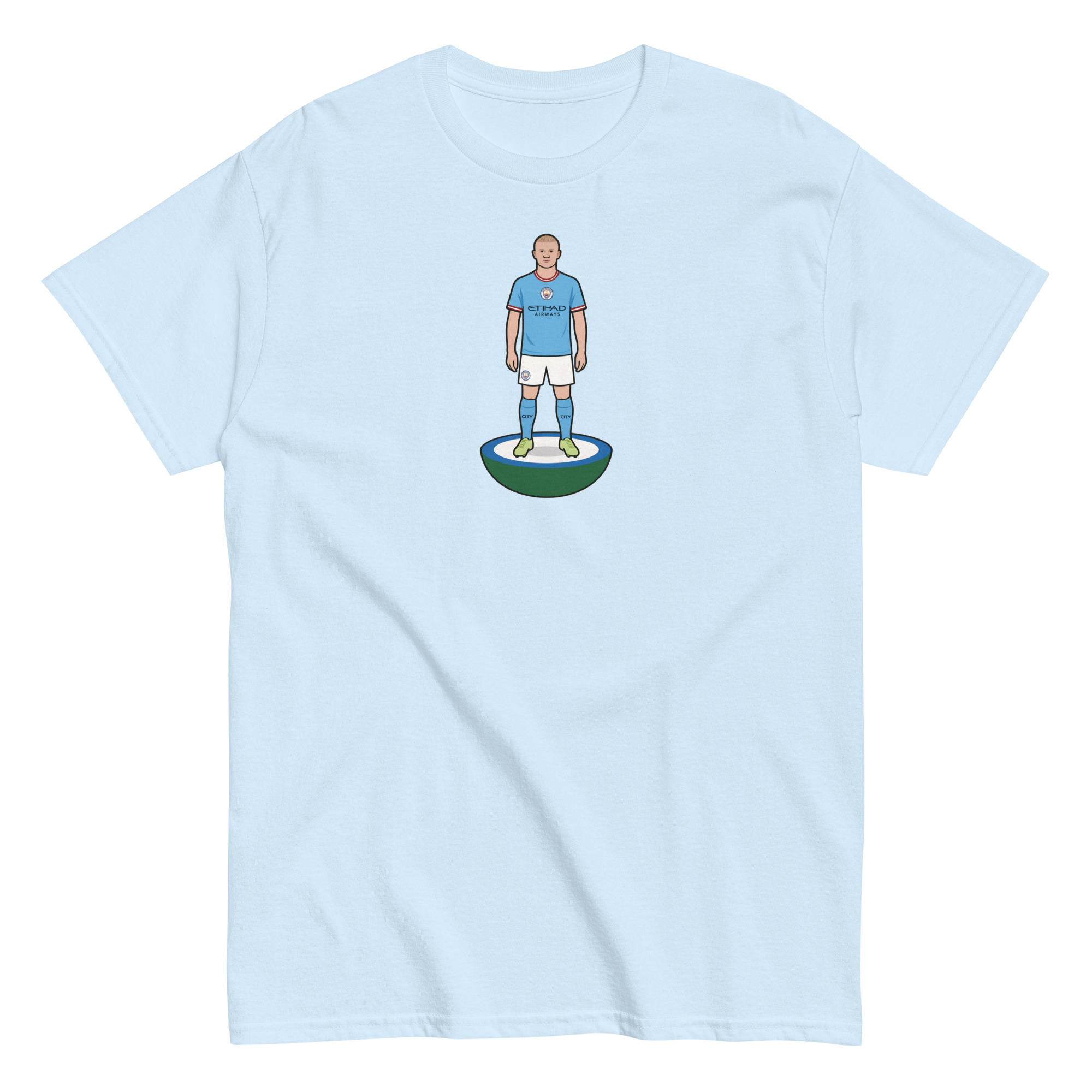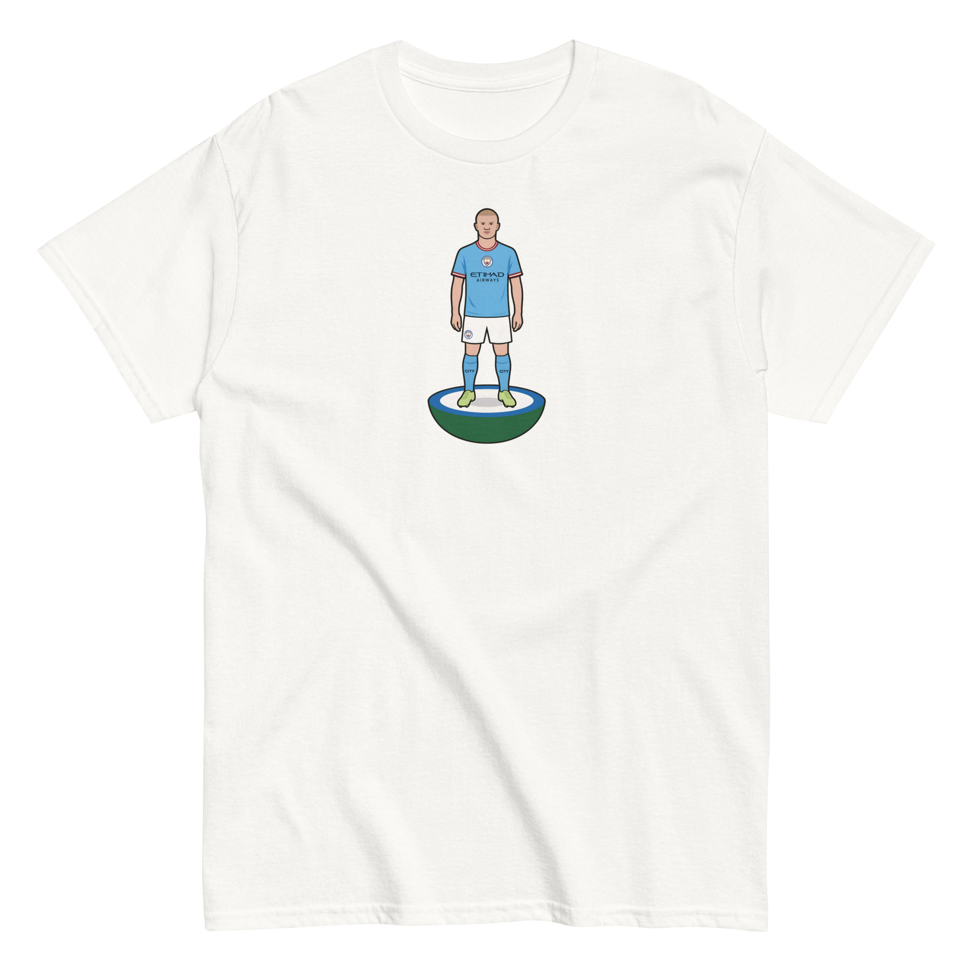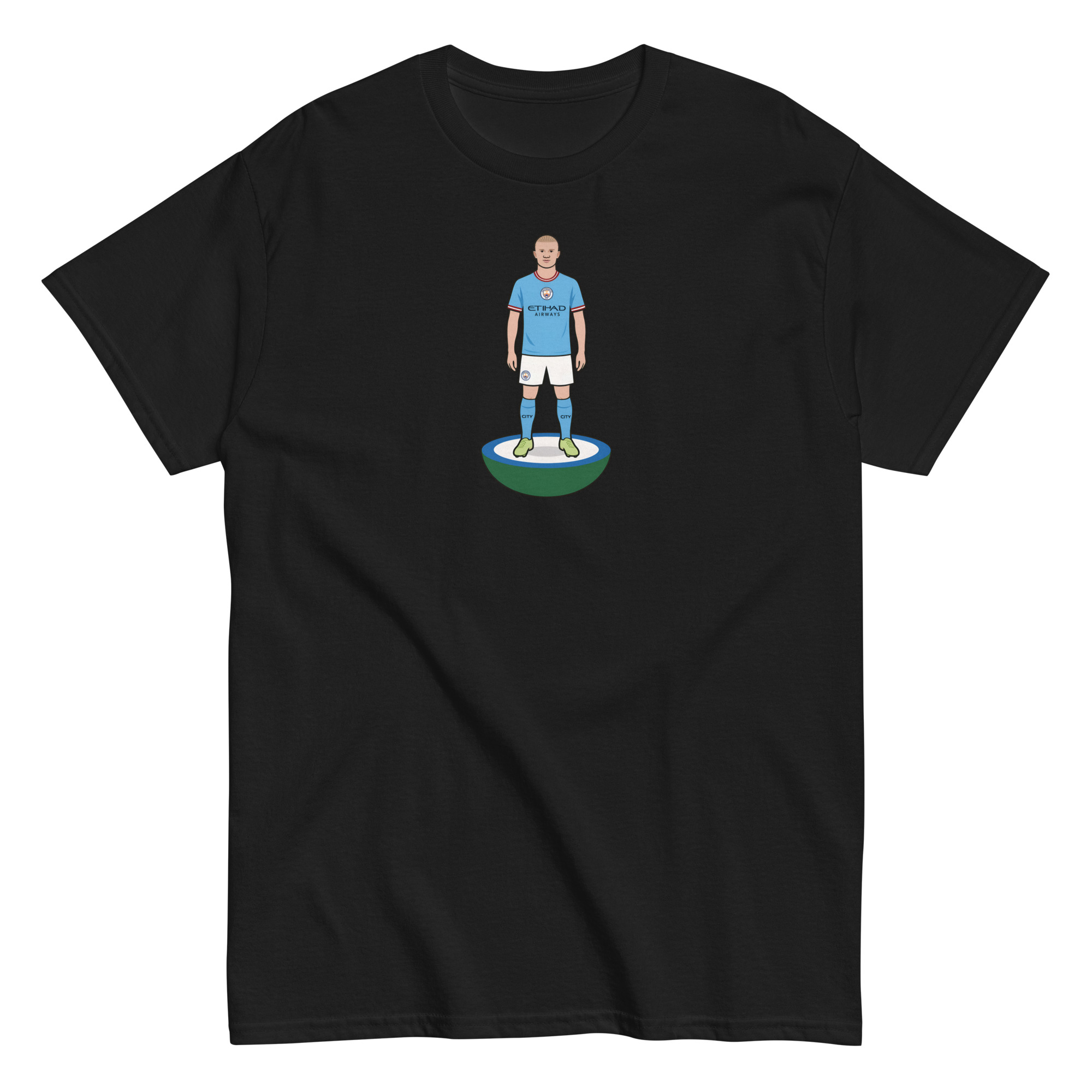• Iconic Subbuteo-inspired print – Featuring Haaland in unmistakable kit, ready for action.