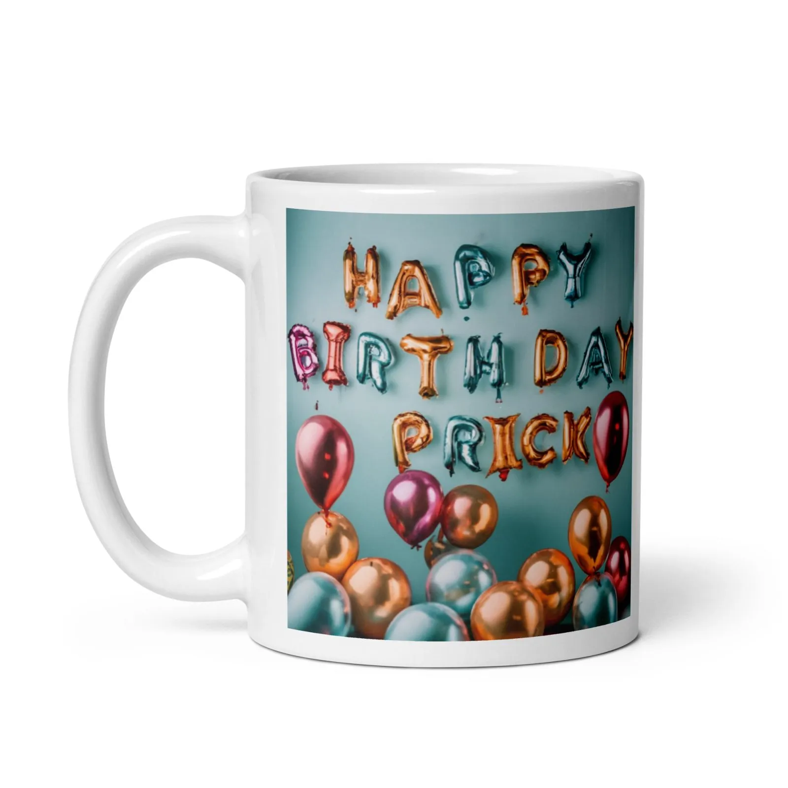 Happy Birthday Prick – Helium Balloons White glossy mug