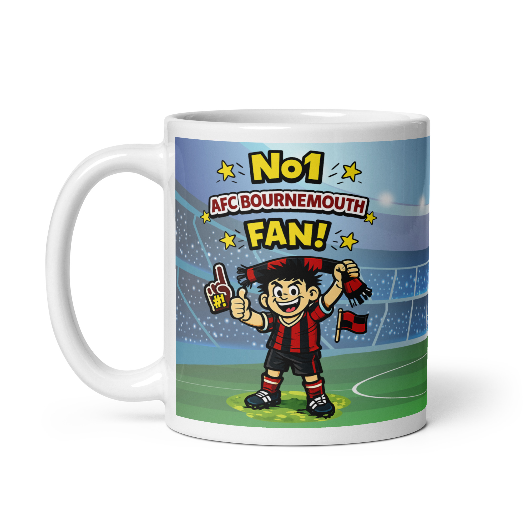 Bold, bright, and packed with football buzz, the design shouts “No1 AFC Bournemouth Fan!” with star details and a lively supporter character in classic red and black. As a result, it’s the kind of mug he’ll instantly claim as his—and you’ll know you’ve nailed the present.