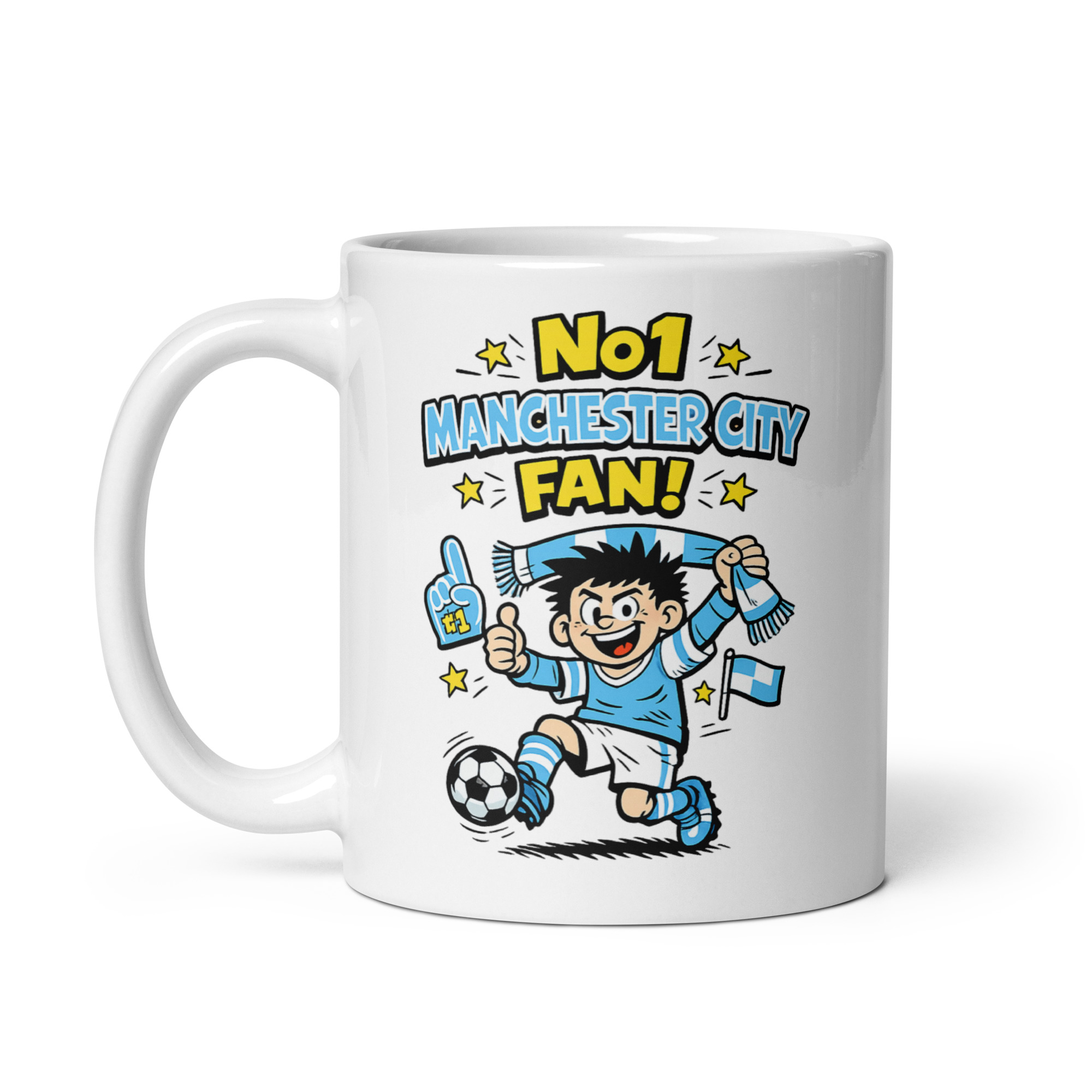 Are you looking for the perfect gift for a Manchester City fan? The Manchester City Fan Mug is exactly what you need! This fun and charming mug features a fun character proudly wearing a Manchester City football kit, with the text “No.1 Manchester City Fan” prominently displayed. It’s an ideal gift for any man who loves his team and enjoys a touch of playful nostalgia.