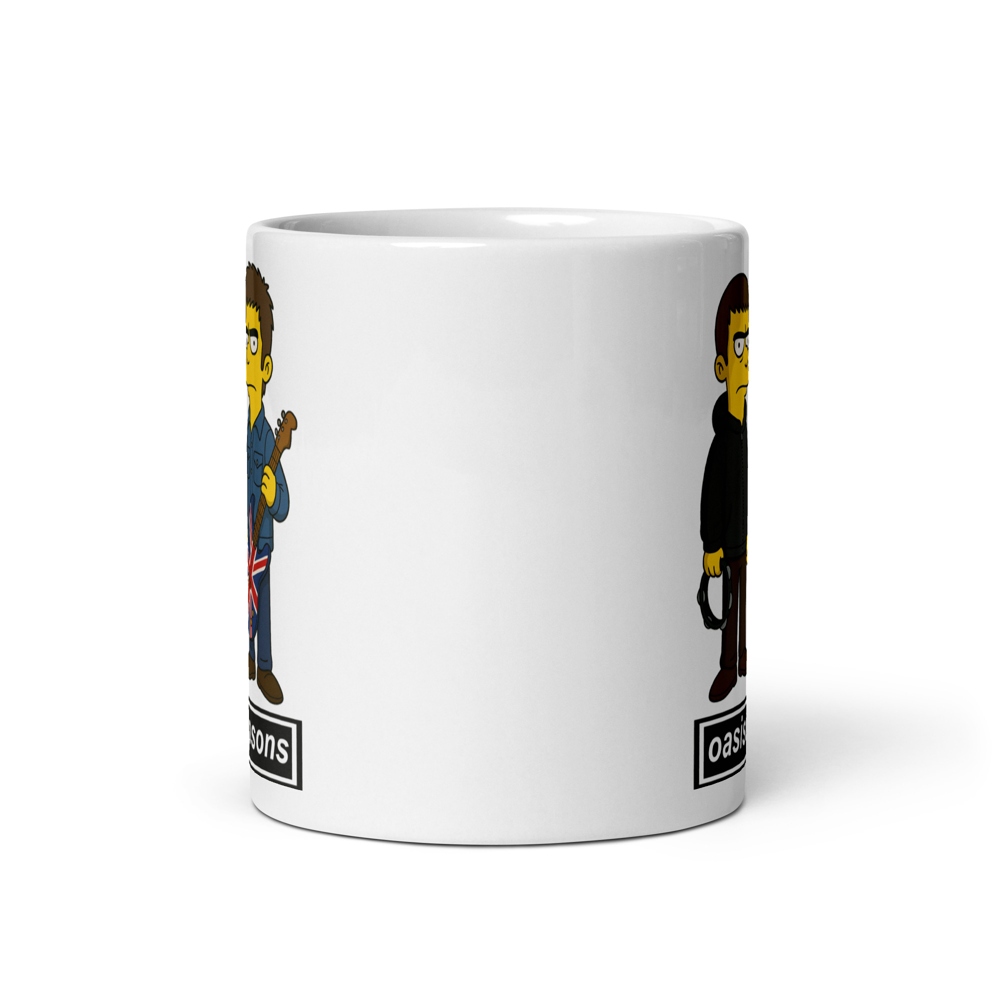 Looking for a fun and original gift for the music-loving man in your life? The Oasis Simpsons Mug blends two cultural icons in a way that’s instantly recognisable and undeniably cool. On one side, you’ve got the Gallagher-esque figures in full Simpsonised glory—one with a tambourine in hand, the other gripping a Union Jack guitar, both wearing the signature scowls we’ve come to love.