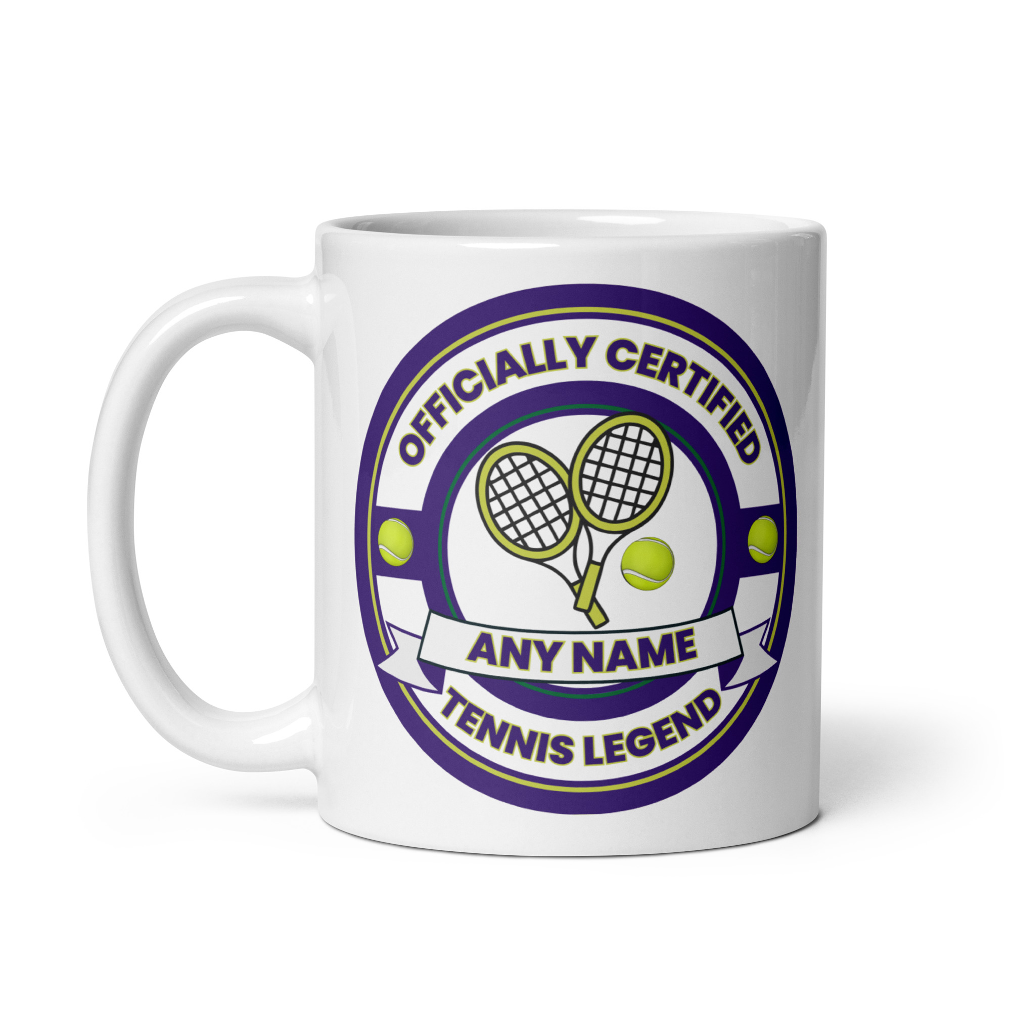 As a result, you are not just giving a novelty item. Instead, you are giving a thoughtful keepsake that celebrates his love for the sport. Every time he reaches for his morning coffee or post-match tea, he will see his name framed within that bold “Tennis Legend” emblem and smile.