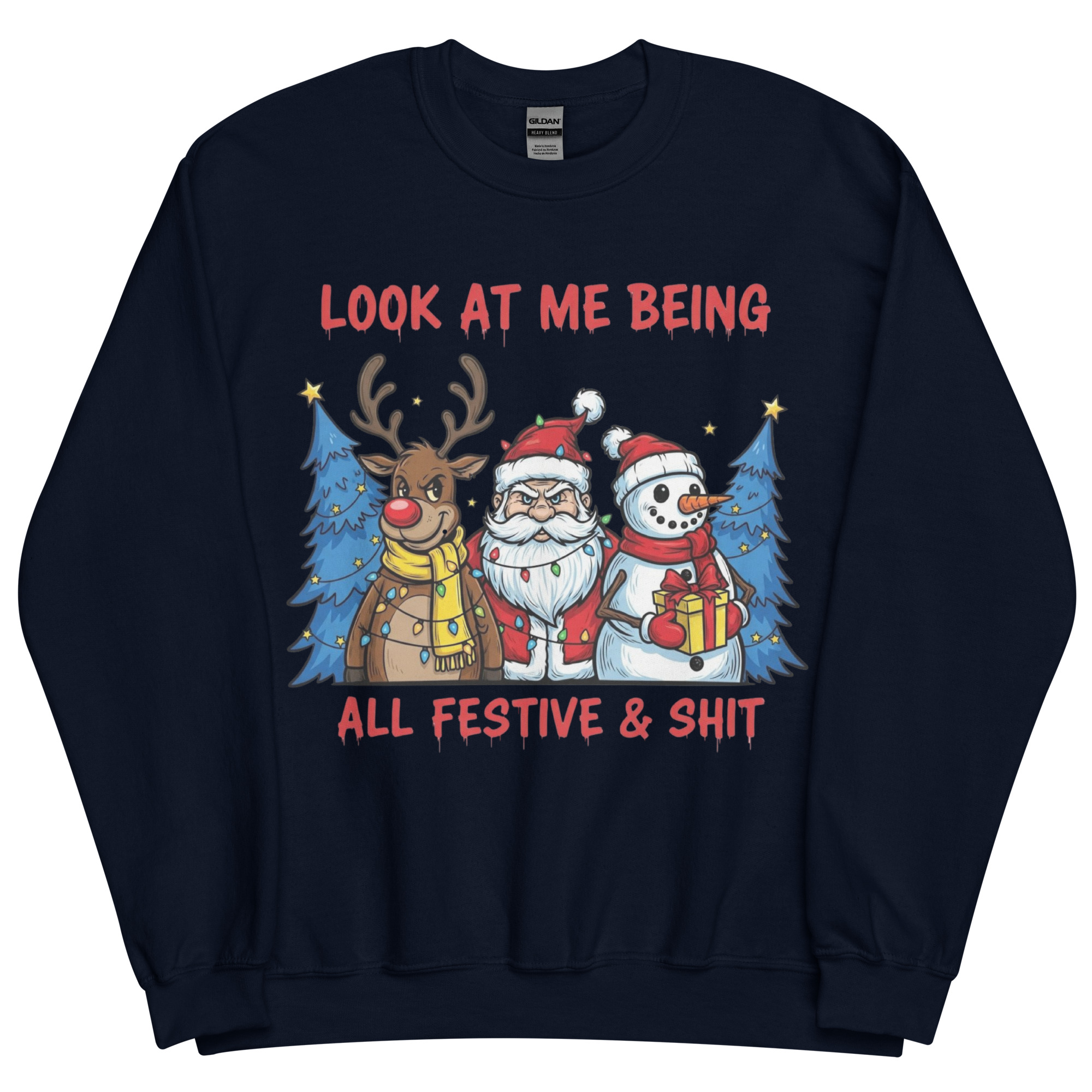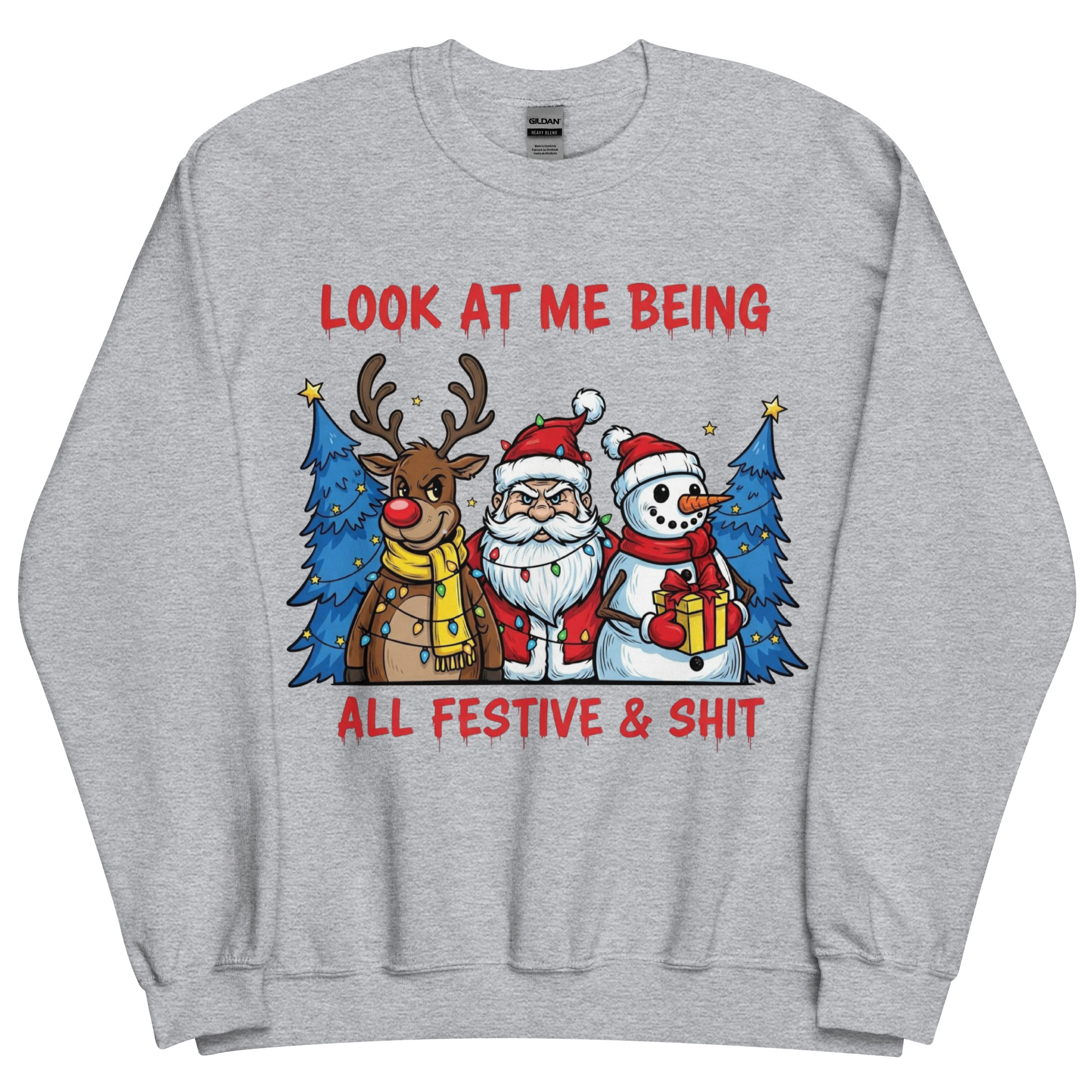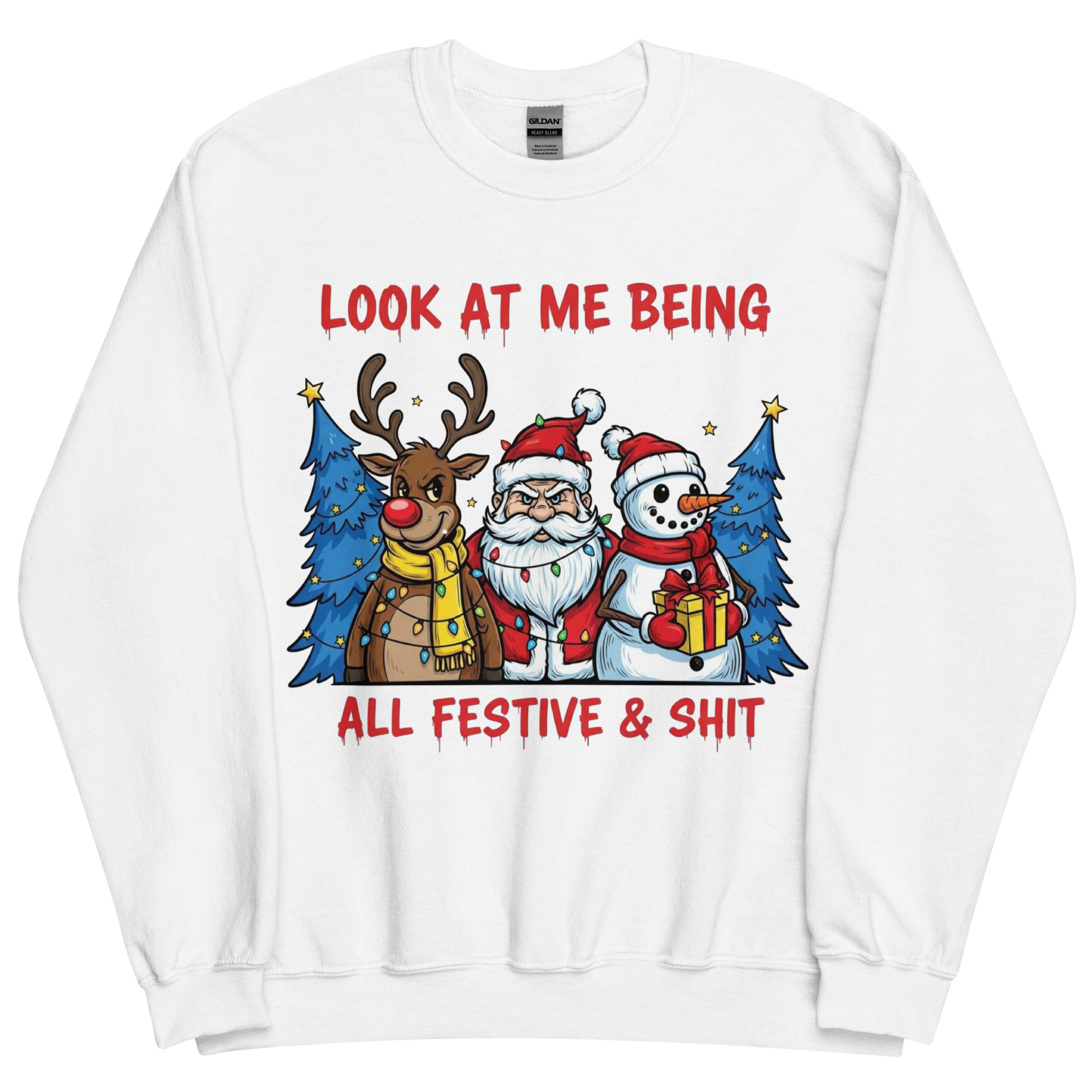 Searching for the perfect festive Christmas sweatshirt that screams, “I’m here, I’m merry, and I might be three mulled wines deep”? You’ve found it. The “Look at Me Being All Festive & Sh*t” sweatshirt is the kind of cheeky Christmas gear that lets you fully embrace the season… without turning into Buddy the Elf. It’s got bold graphics, a sprinkle of sarcasm, and a vibe that says, “I’m doing Christmas, but on my terms.”