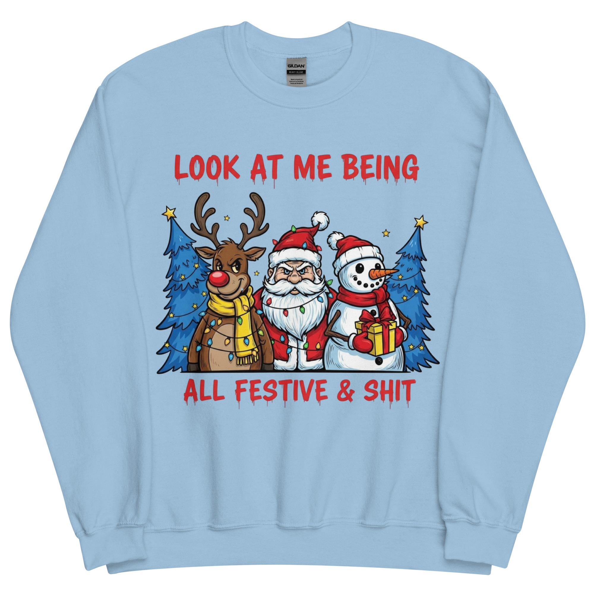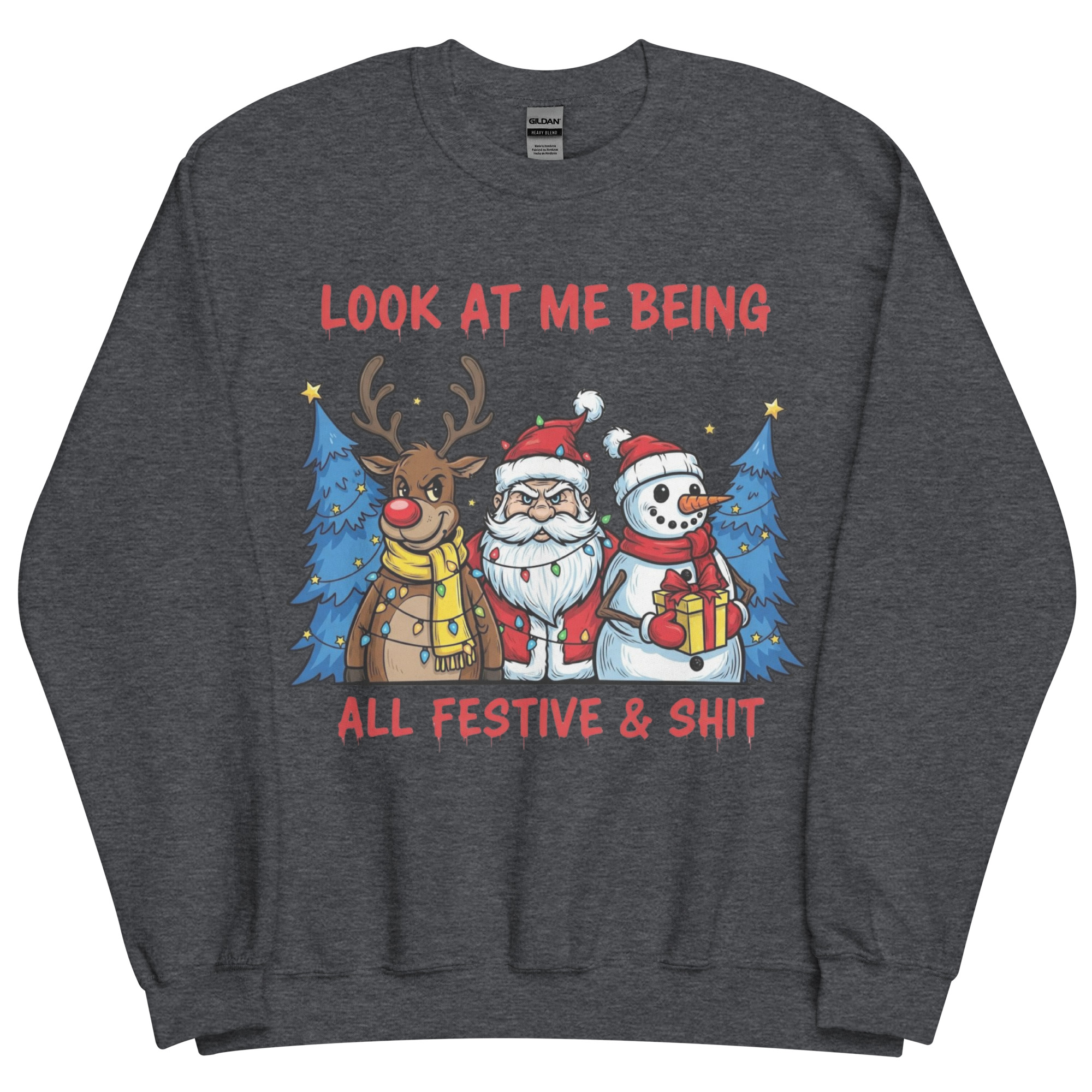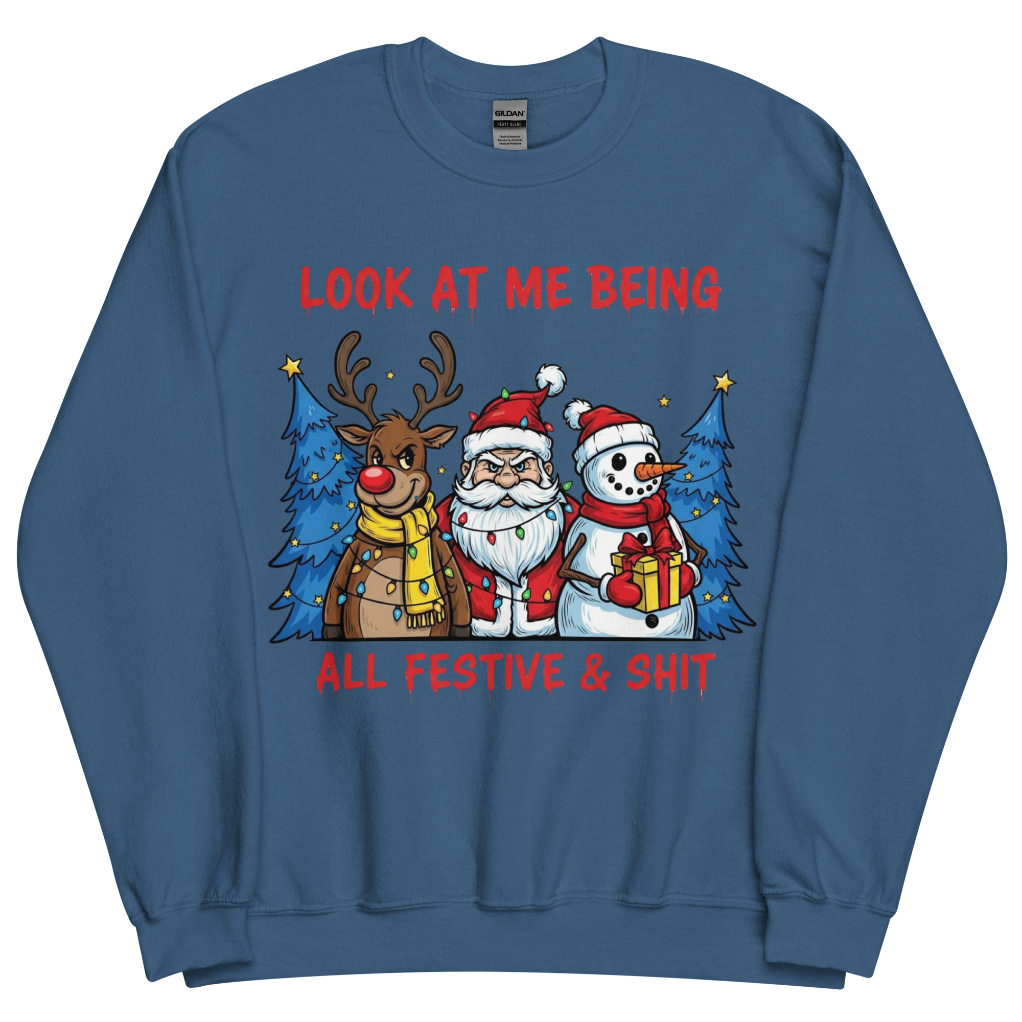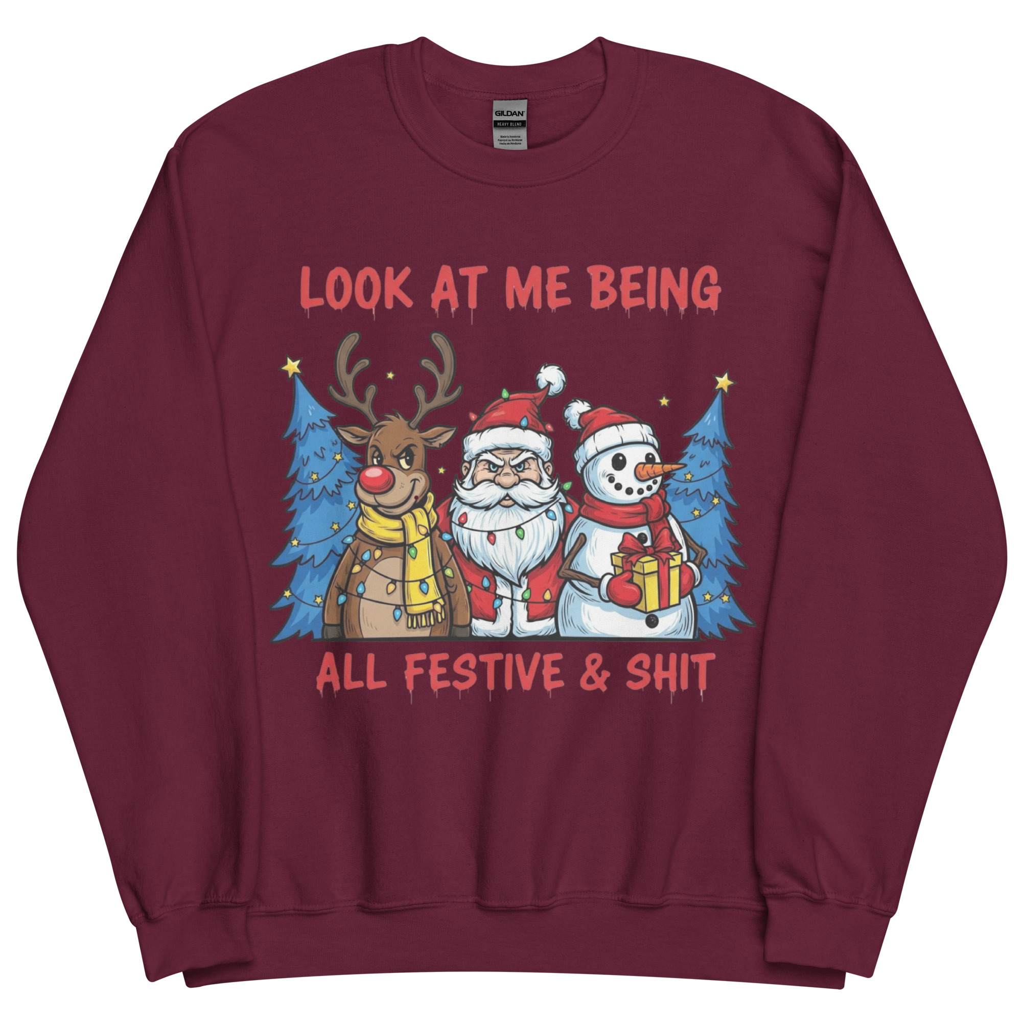 Searching for the perfect festive Christmas sweatshirt that screams, “I’m here, I’m merry, and I might be three mulled wines deep”? You’ve found it. The “Look at Me Being All Festive & Sh*t” sweatshirt is the kind of cheeky Christmas gear that lets you fully embrace the season… without turning into Buddy the Elf. It’s got bold graphics, a sprinkle of sarcasm, and a vibe that says, “I’m doing Christmas, but on my terms.”