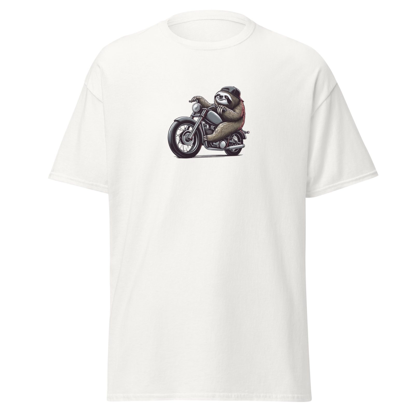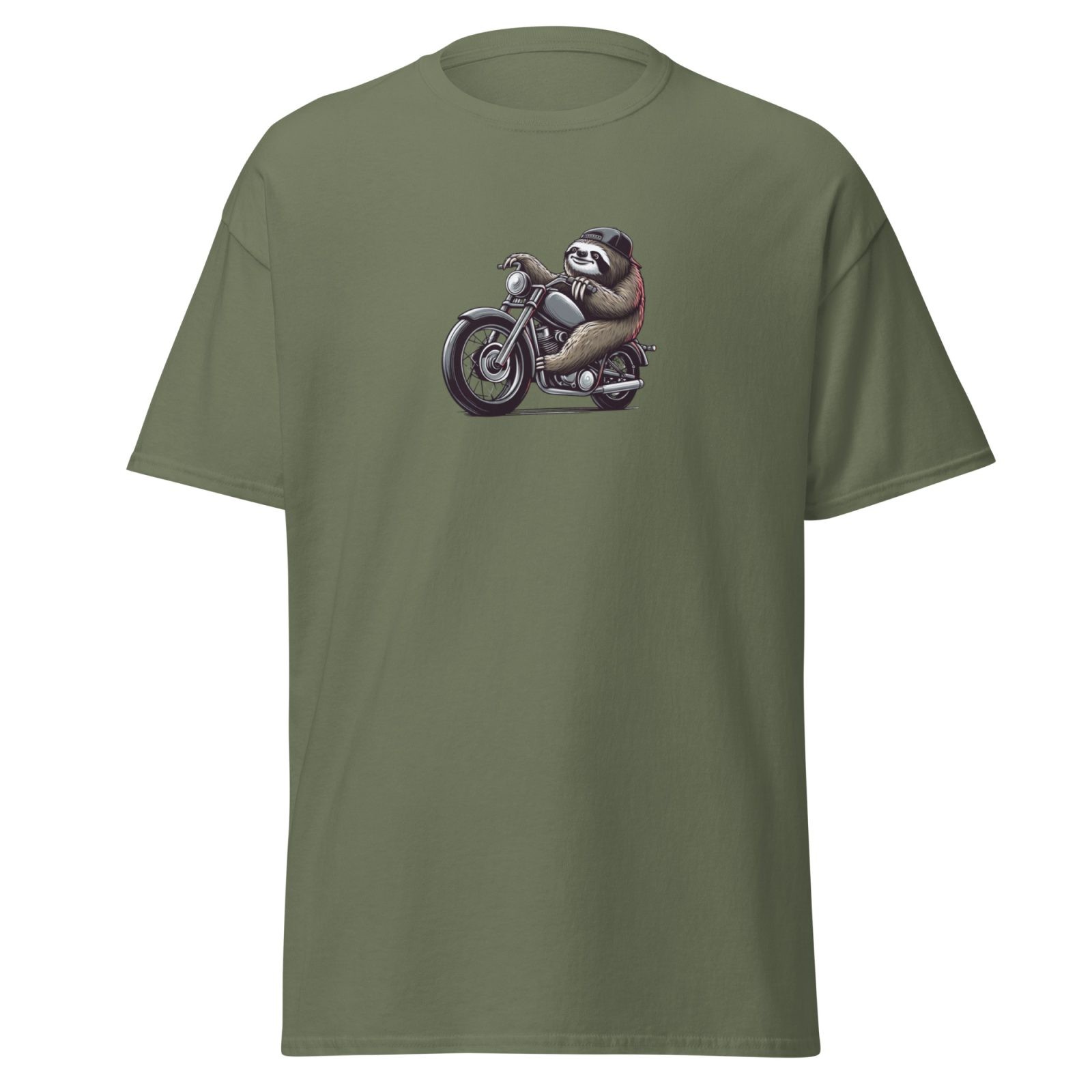 “Sloth Rider” T-shirt! It’s the perfect blend of manly adventure and hilarious charm, designed for blokes who appreciate a good laugh and a dash of daring.
