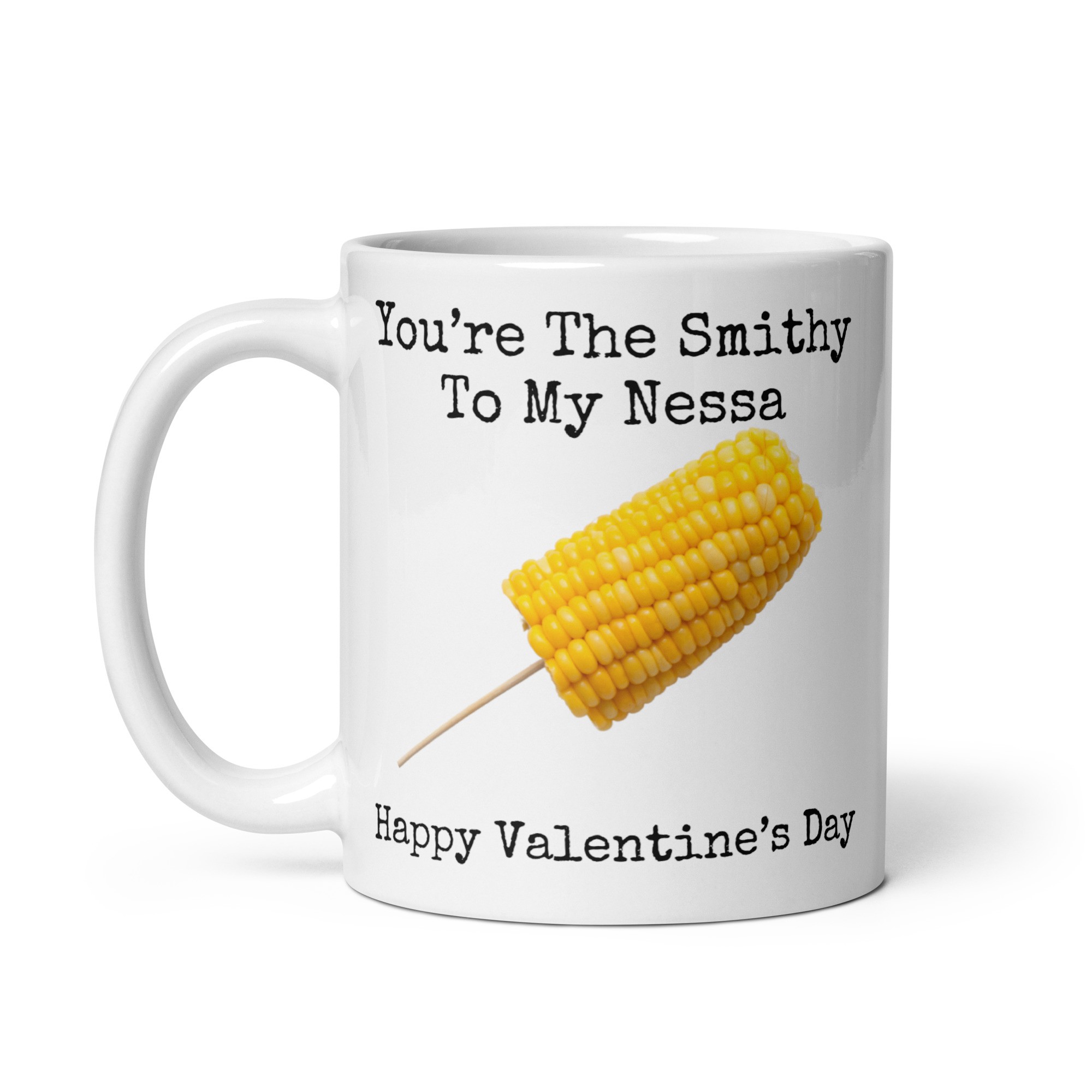Looking for a Valentine’s Day gift that’s as unique and funny as your relationship? The Smithy & Nessa Sweetcorn Valentine’s Mug For Him is the perfect choice! Featuring the heartfelt and hilarious phrase “You’re the Smithy to My Nessa” alongside an image of a corn on the cob on a stick, this mug is a delightful nod to the iconic love-hate relationship from Gavin & Stacey. It’s a fun way to celebrate your bond and show him just how much he means to you – with a cheeky twist.