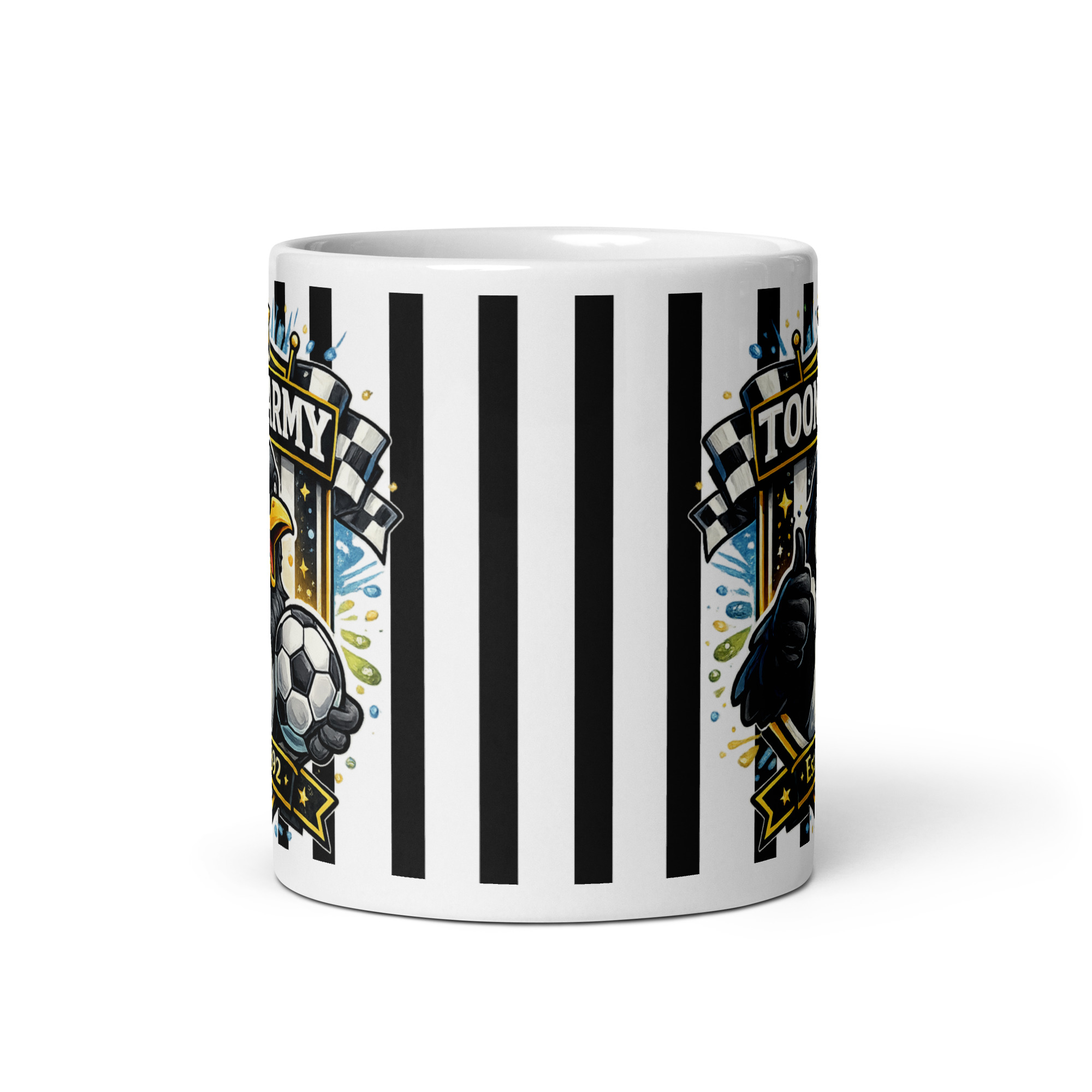 Front and centre, you’ve got a standout “Toon Army” crest-style design, complete with classic black-and-white stripes, a proud mascot graphic, and the iconic “Est. 1892” detail. In other words, it looks the business on a desk, in the kitchen, or perched next to the biscuit tin during a tense second half.